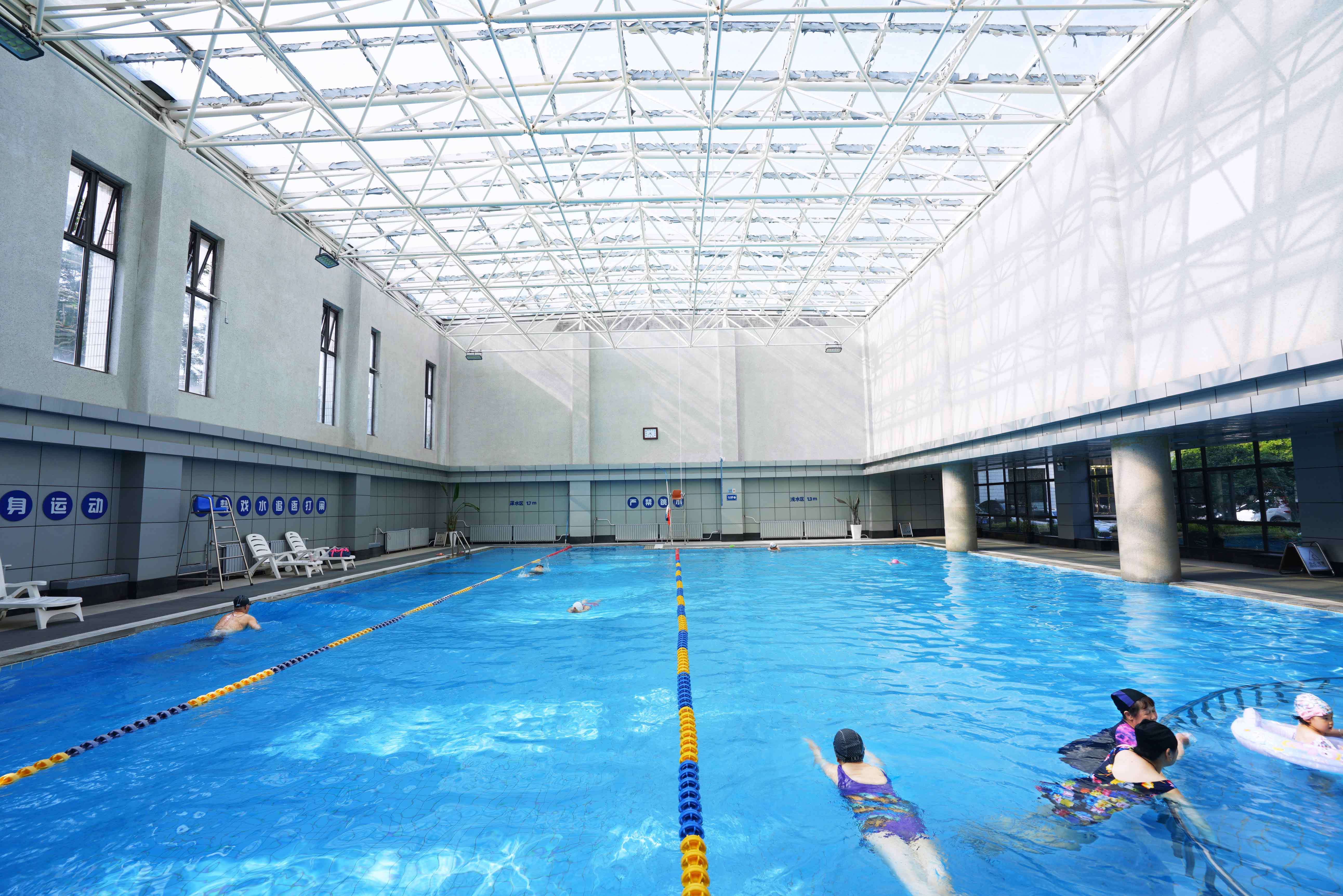 西北饭店温泉游泳馆池长25米宽17米,深水区1.7米,浅水区1.2米。采用与杨贵妃沐浴同源的天然地热温泉水,引入国际先进的循环过滤消毒系统,令水质更加清澈透明,在强身健体的同时还能充分享受温泉的乐趣,使得肌肤光洁丝滑,健康养颜! 西北饭店温泉游泳馆是西安市游泳运动管理中心后备人才基地,专业的教练、安全的环境、人性化舒适的设计、周到细致的服务,在这里游出美丽,游出健康,游出快乐好心情。 咨询电话:029-85678096